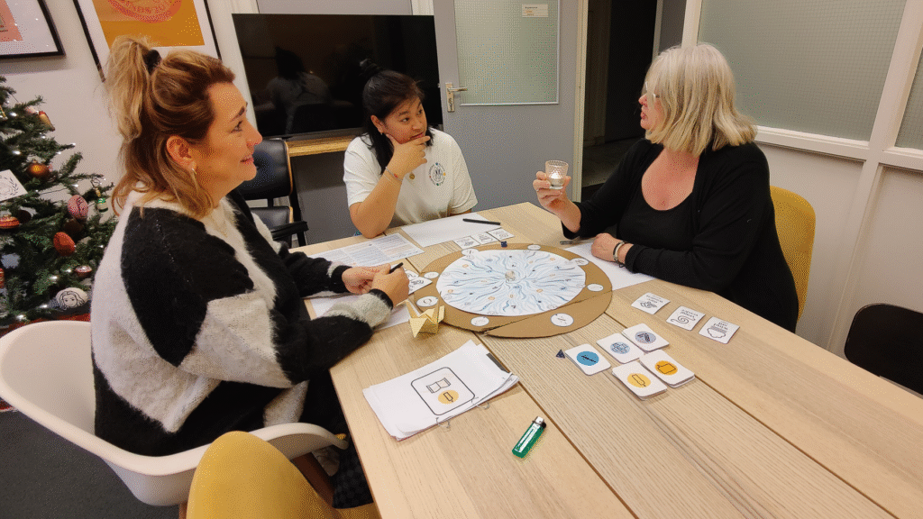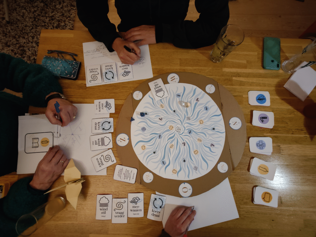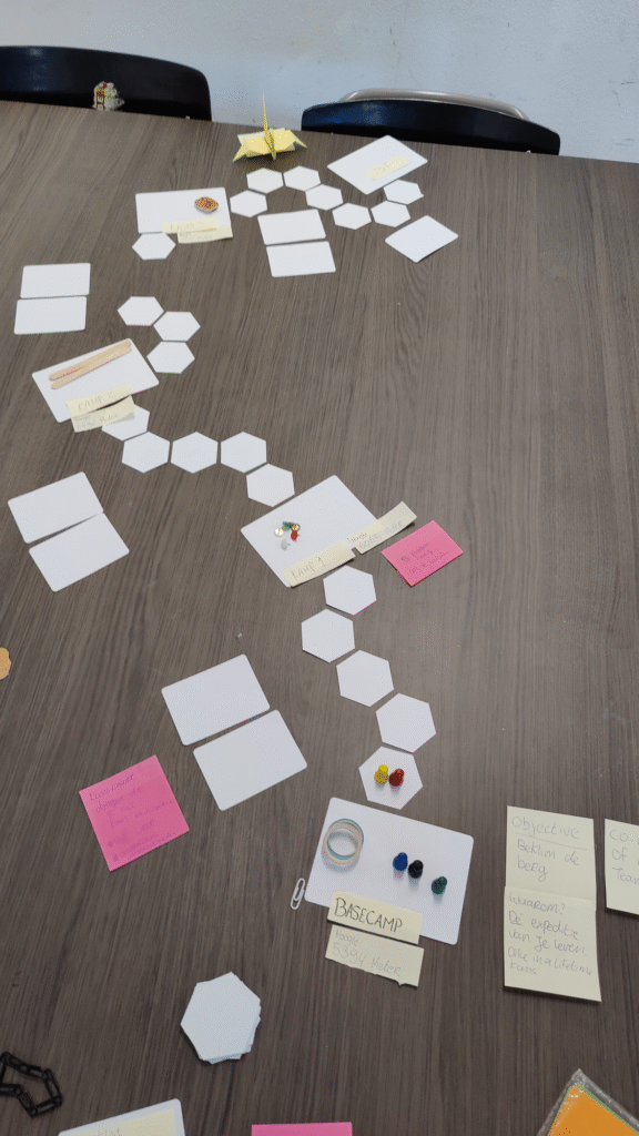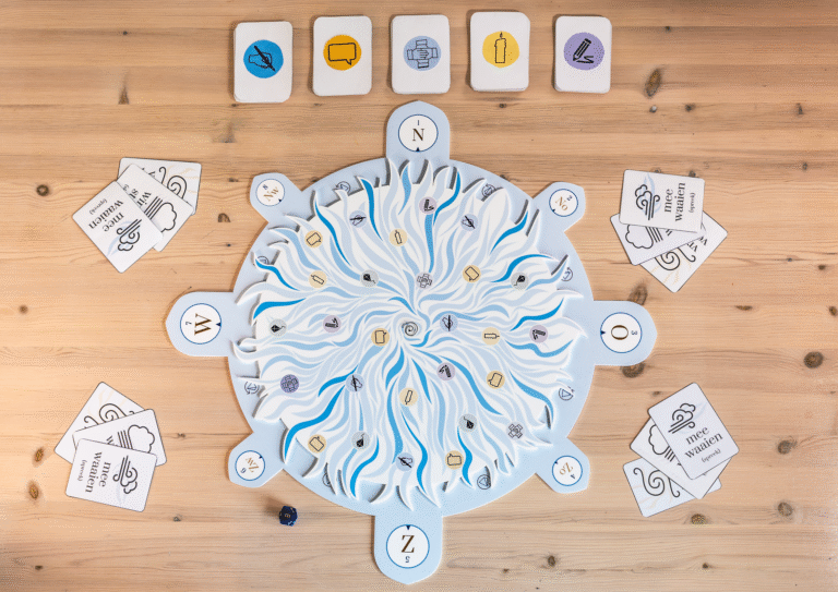 Het metafoor moest neutraler worden, net zoals het verloop van het spel. In rouw is er geen plek voor “scoresystemen” en “winnaars”. Het gaat om het faciliteren van een gesprek en de verbinding. Niet om de strategie of het winnen. Terug naar de tekentafel.