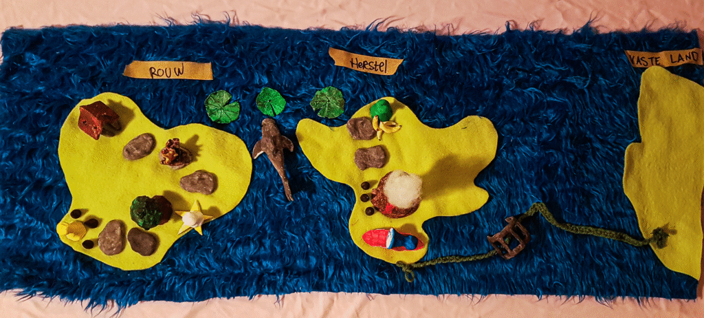 De speler (persoon in rouwproces) mag de eilanden van rouw en herstel inrichten met attributen.