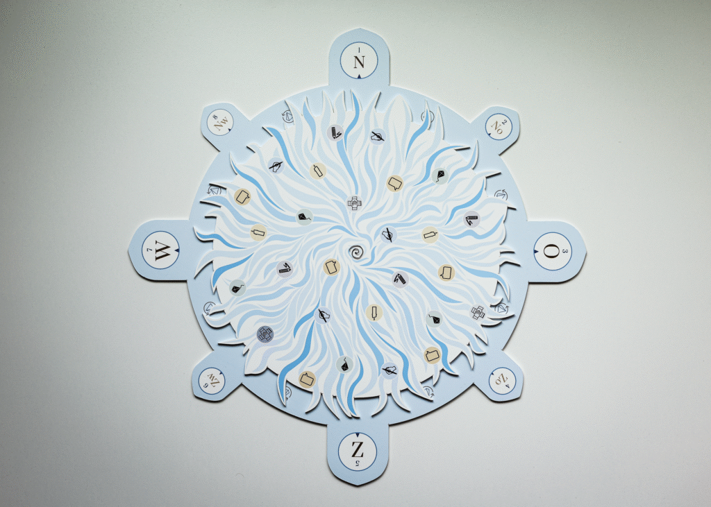 De uitnodigende communicatie komt ook voort uit het grafisch ontwerp. Het ronde bord heeft geen “juiste” orïentering en betrekt daarmee iedereen die aan elke kant zit. Ook is de bovenste laag van het bord draaibaar, een mechanisme dat is bedoeld als de teamtotem aan de rand komt en niet verder kan. Dit is een simpel, maar speels en uitnodigend mechanisme om het spel in beweging te houden – letterlijk.